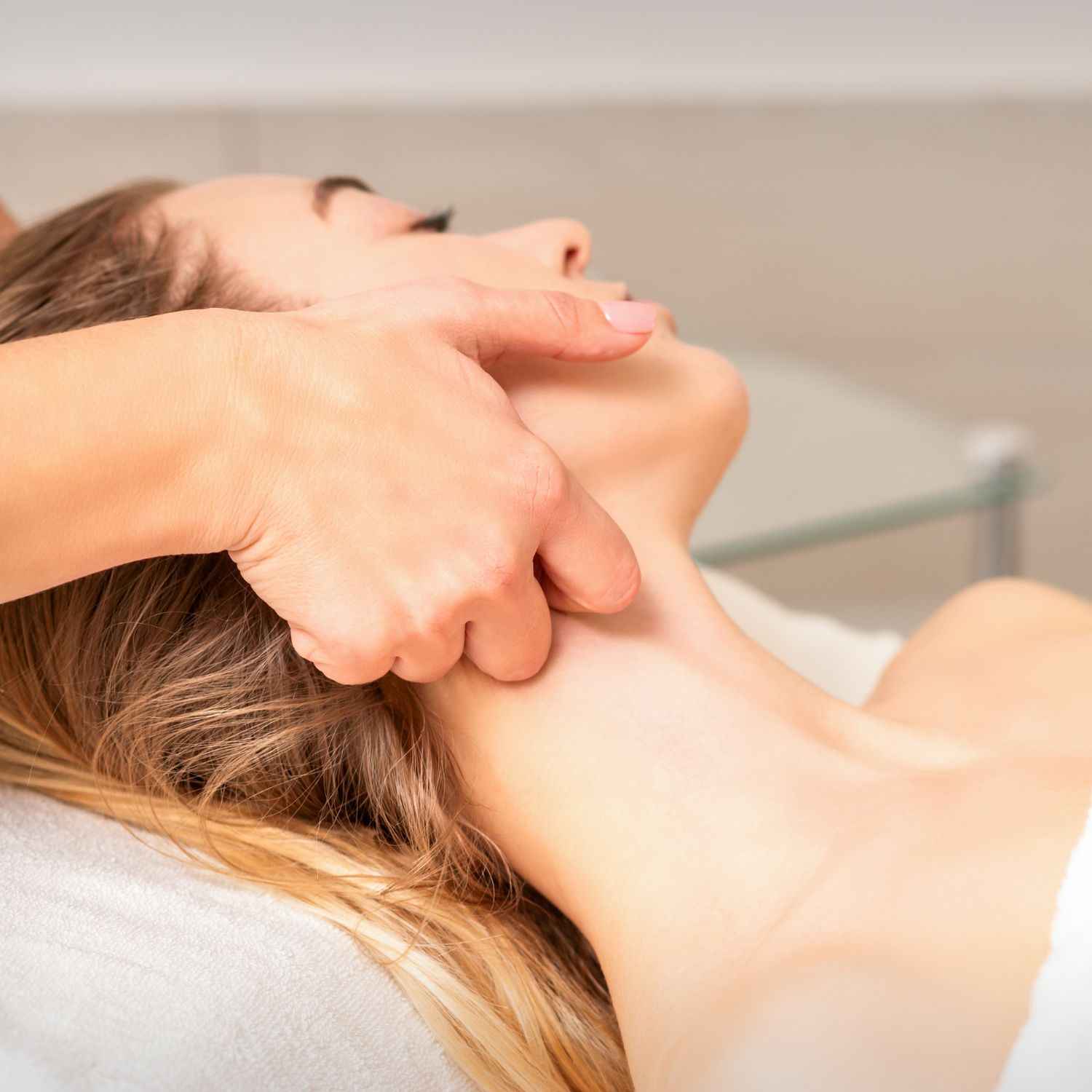 - Pressions légères et répétées pour guider la lymphe vers les ganglions.